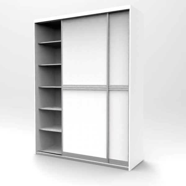 ארון הזזה 2 דלתות עם פסי ניתוק צפופים, דגם רלי. שתי הדלתות הן מלמין בשילוב פסי ניקל אחד אחרי השני שהם צפופים מאלומיניום ניקל או שחור לבחירה, דבר המקנה לארון את המראה המיוחד. גוון המלמין וגוף הארון ב7 צבעים לבחירה. הארון כולל פרופיל דלתות מאסיבי בייצור בלעדי בעל תו תקן המשלב מנגנון טריקה שקטה מובנה במסילה. יתרון חשוב שהרכבת הארון והייצור מתבצע באופן קפדני עם חלקי מתכת להבטחת איכות לאורך זמן ובסידור פנימי עפ"י החלטת הלקוח ללא חורים מיותרים בארון.